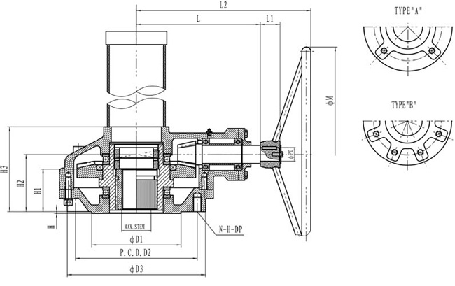 1.該裝置是直接安裝在閘閥和截止閥上的手動(dòng)裝置。